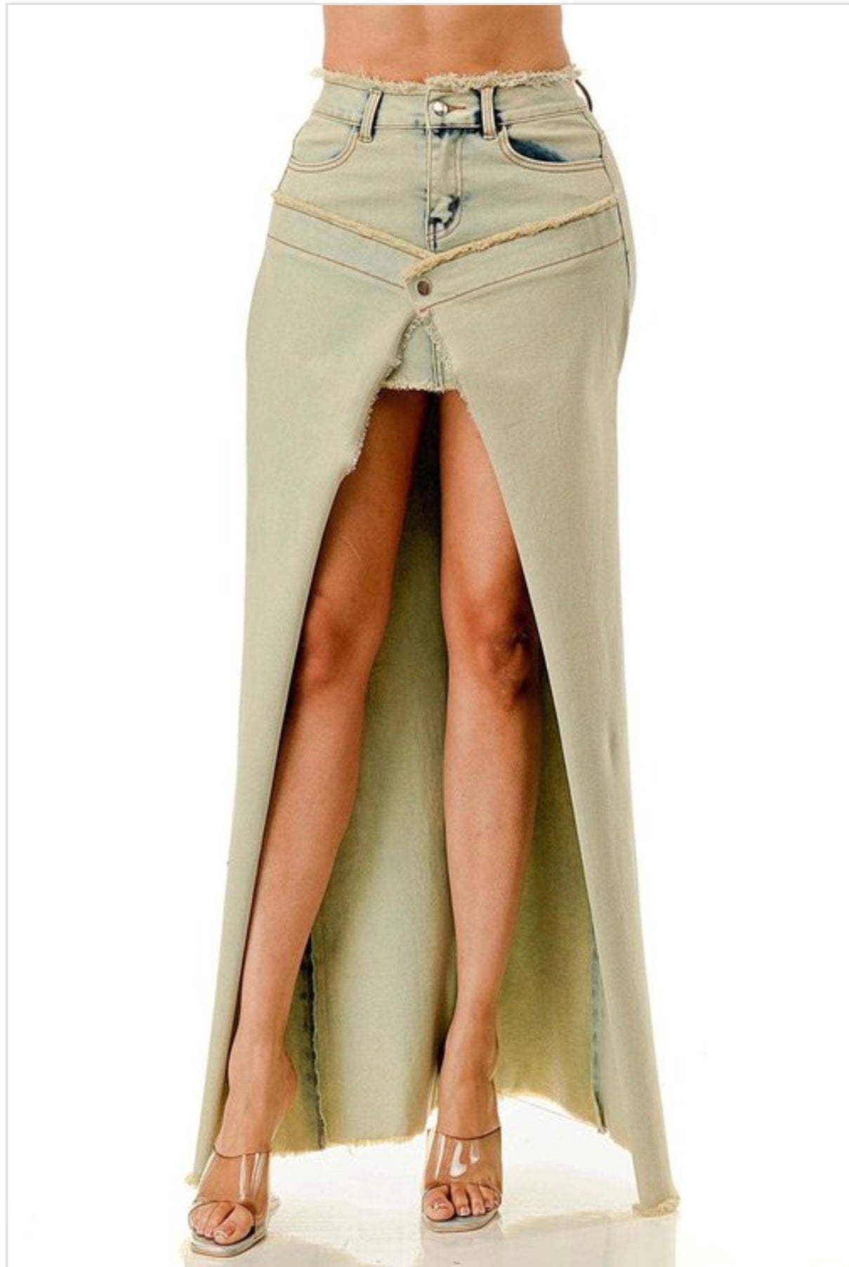 Integre una sofisticación vanguardista con su superposición de patchwork, elegantes detalles deshilachados y un estilo envolvente moderno. El modelo lleva una talla Medium. La falda ofrece una ligera elasticidad para mayor comodidad.
