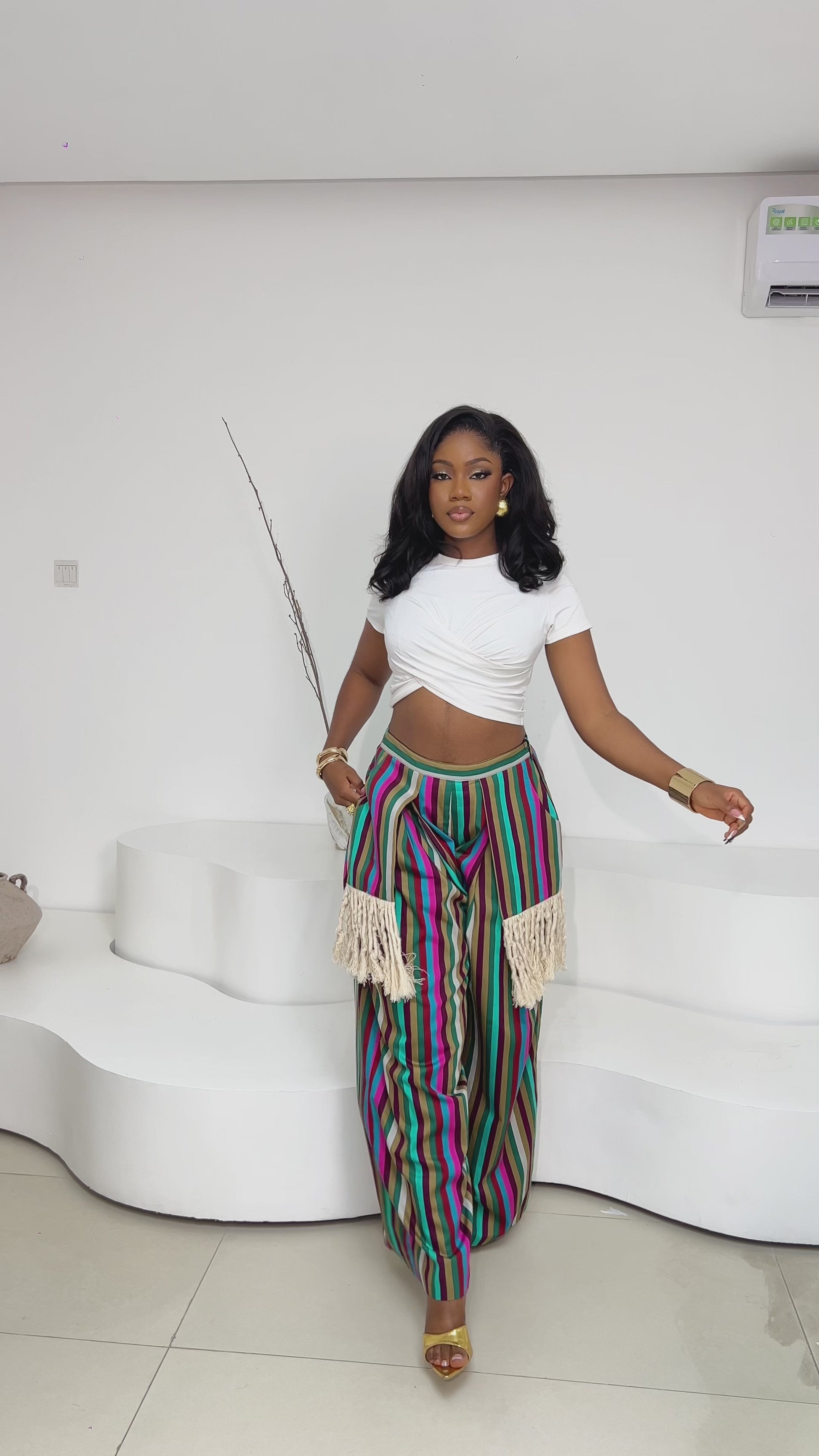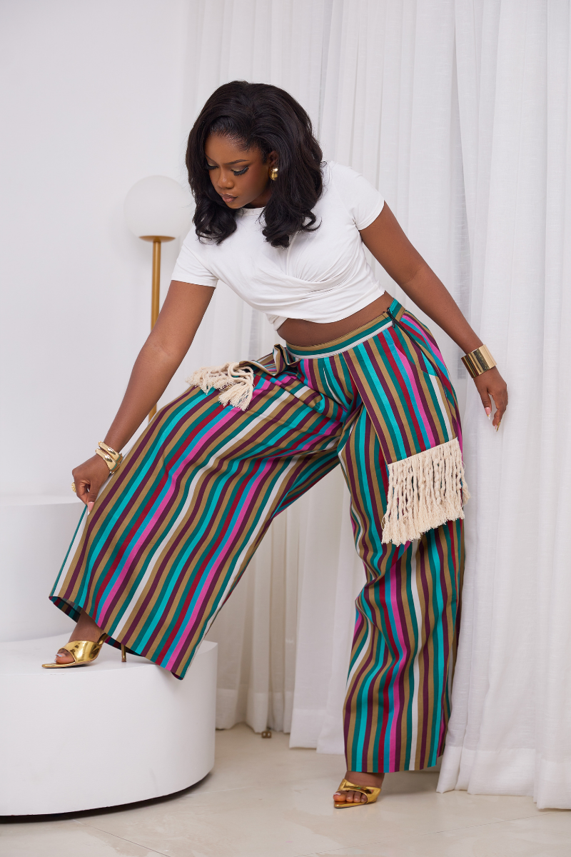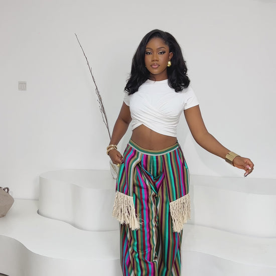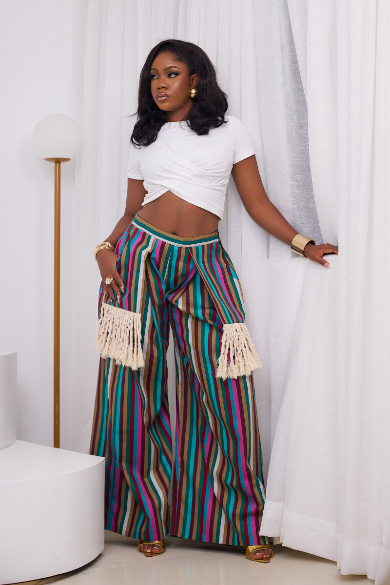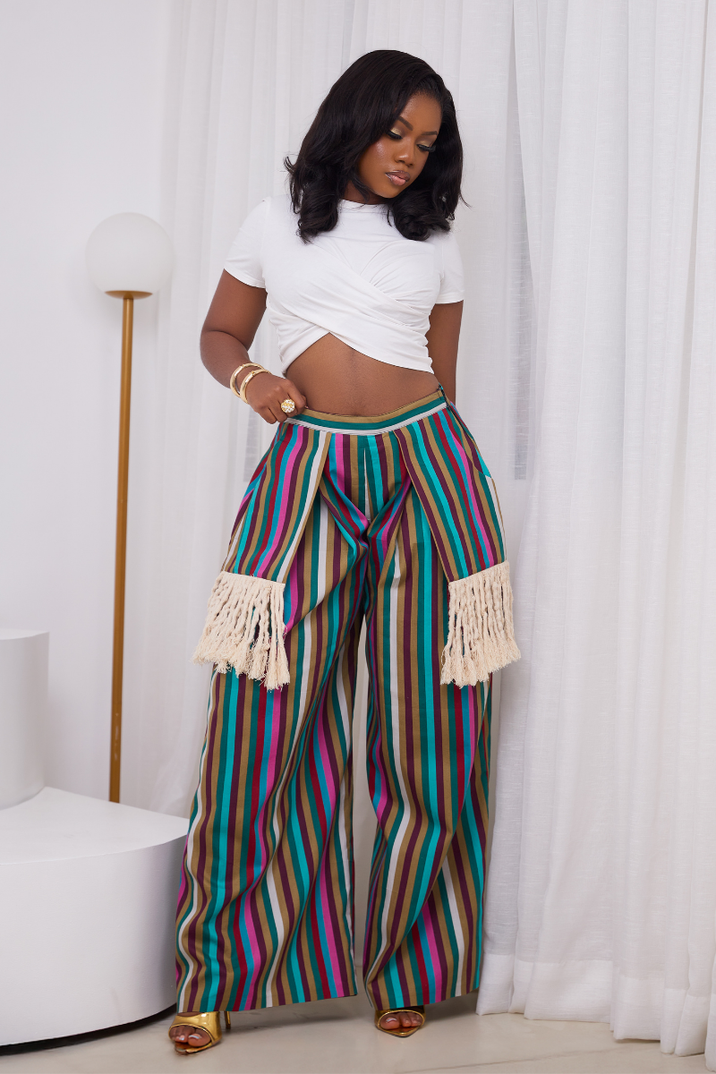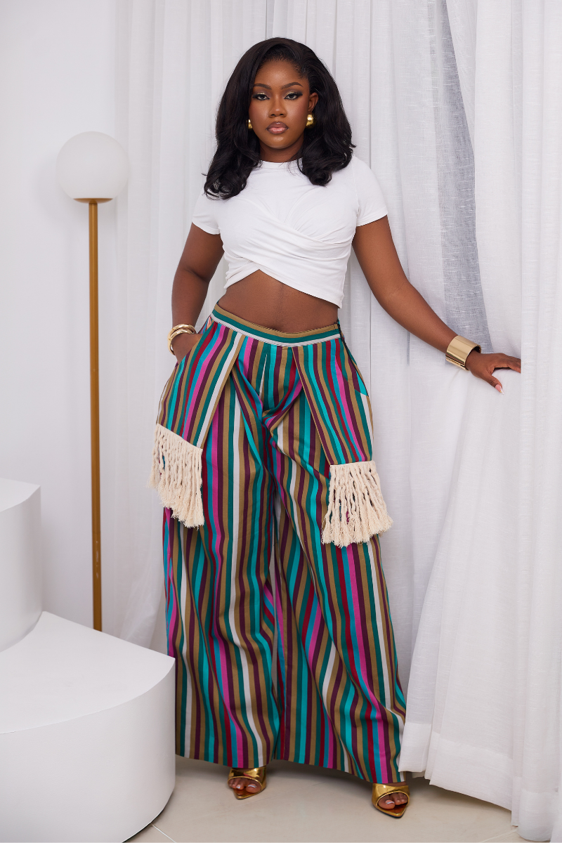 Crafted from rich West African Asooke fabric with an intricate wick thread design, these pants blend tradition with modern elegance. The straight-leg cut and flattering loose fit offer effortless style, while thoughtful details like side pockets and a discreet side zipper add practicality and ease.