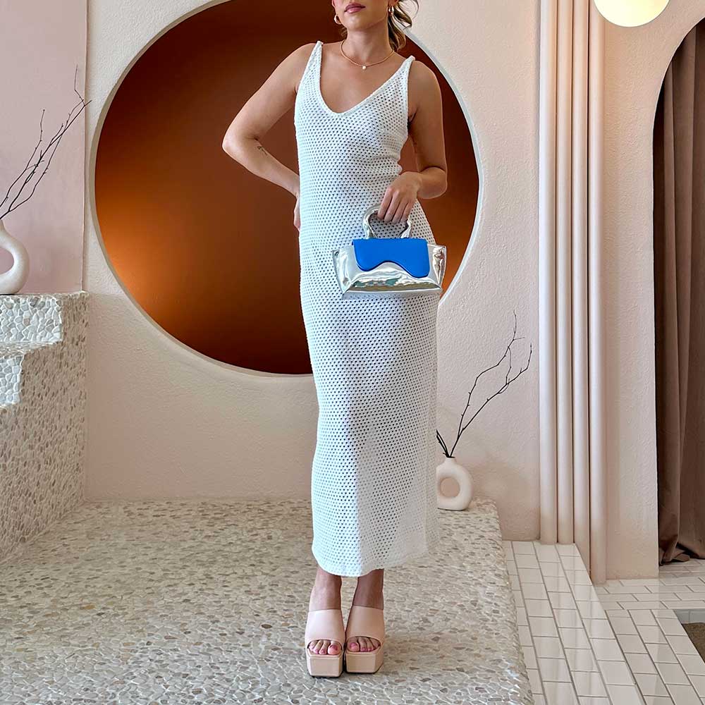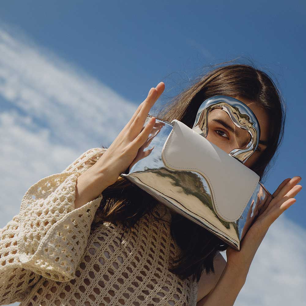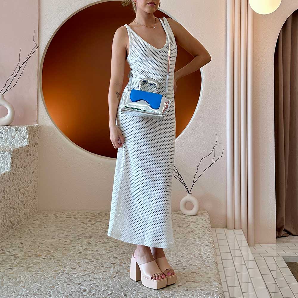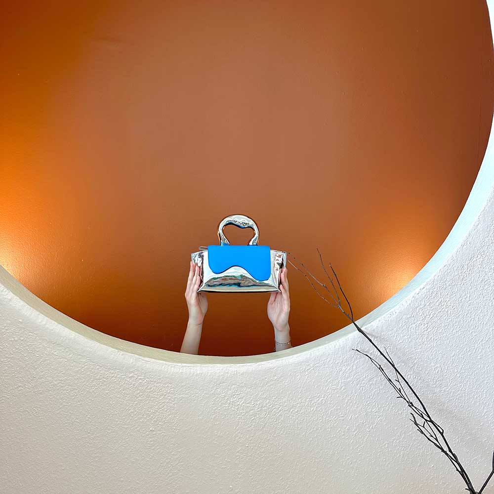 - This Akari Snow Drop Vegan Top Handle Bag is a strikingly unique and detailed accessory. Crafted from recycled vegan leather, this metallic bag showcases both fashion and sustainability. The adjustable strap allows for comfortable crossbody wear, while the interior features a slip and zip pocket. With its OEKO-TEX certified lining, this bag can fit an iPhone 14 Pro and its zipper closure ensures security. Silver-tone hardware adds a touch of elegance.