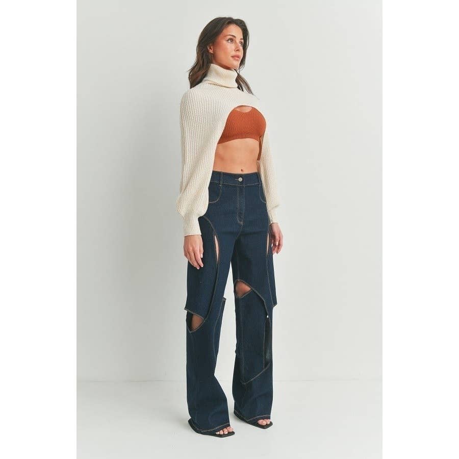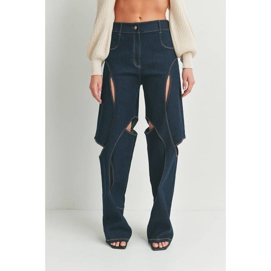 CUFF CUTOUT DENIM PANTS (FINAL SALE