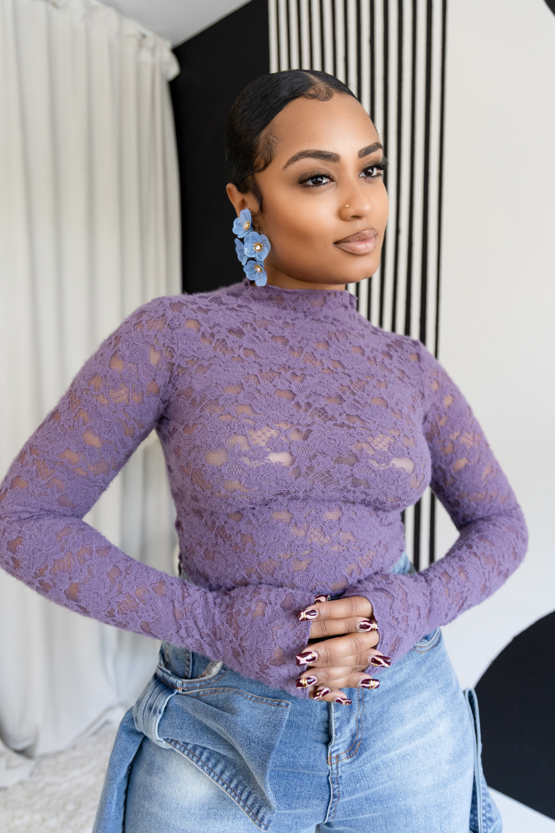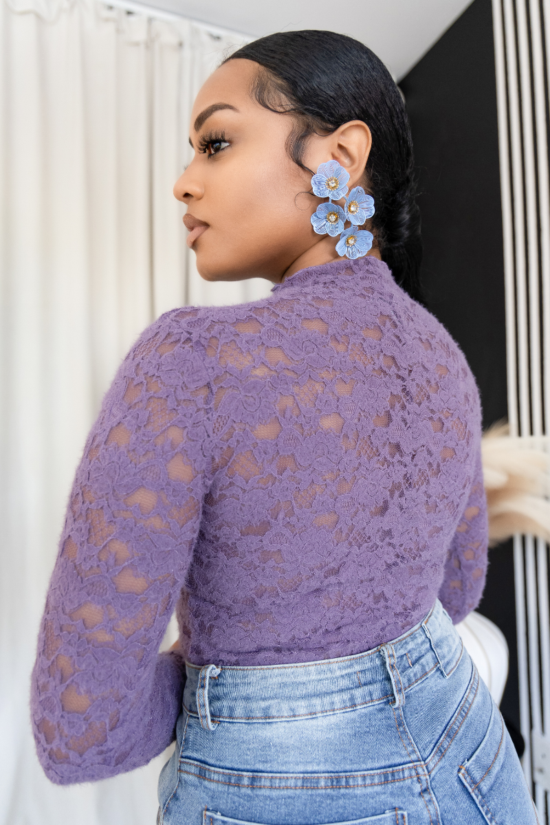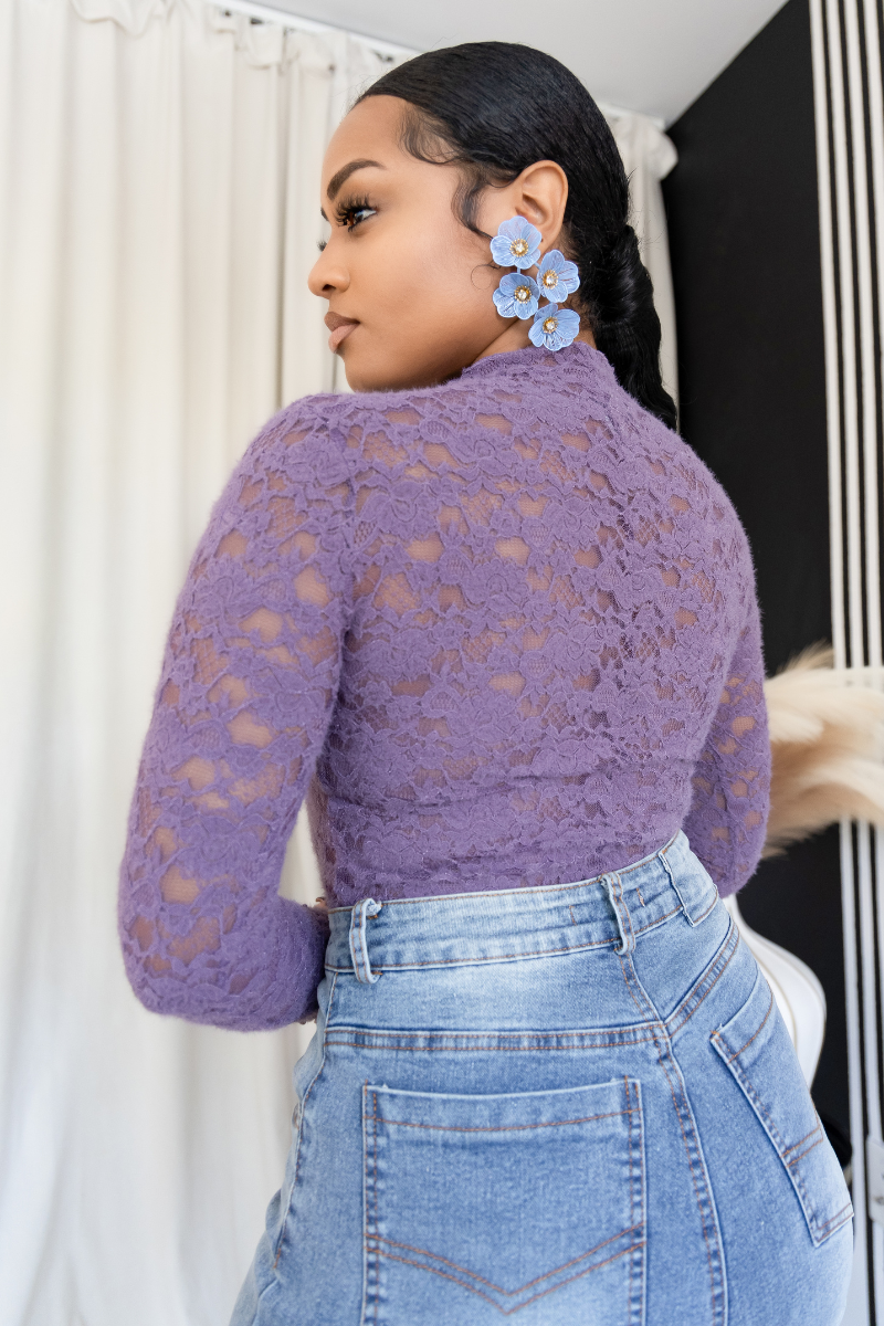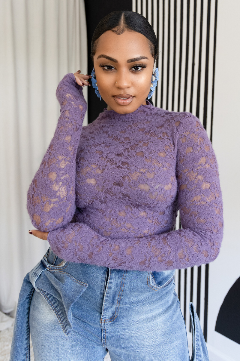 - Enhance your wardrobe with this sophisticated long sleeve lace top. Its high neck and intricate lace detailing add a delicate and feminine touch to any outfit. The fitted silhouette and soft fabric provide comfort, making it versatile for both casual and formal occasions. Complement it with a pleated skirt or tailored trousers for a timeless and refined appearance.