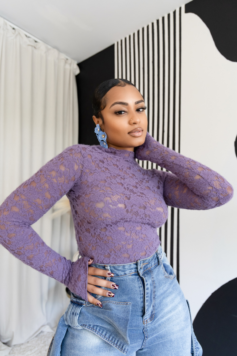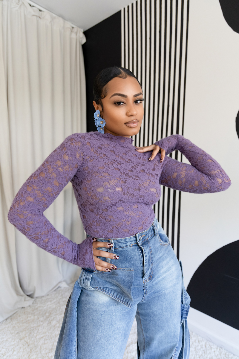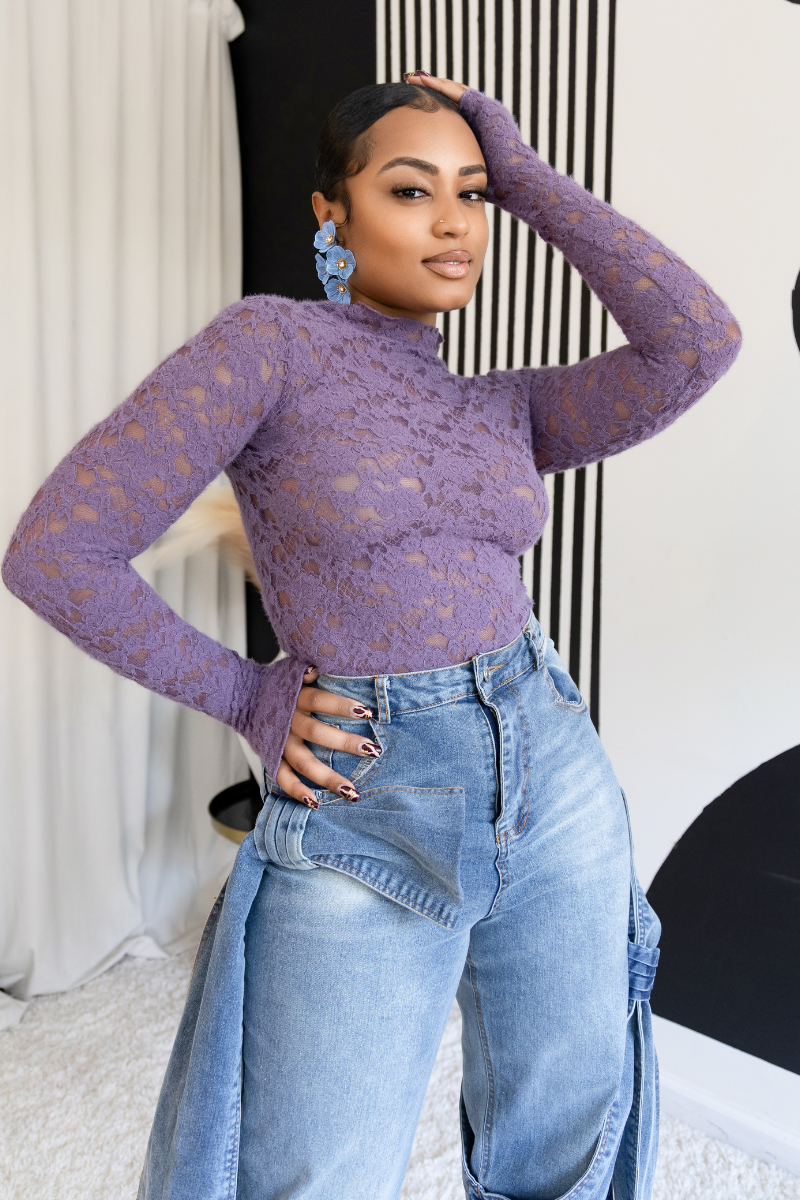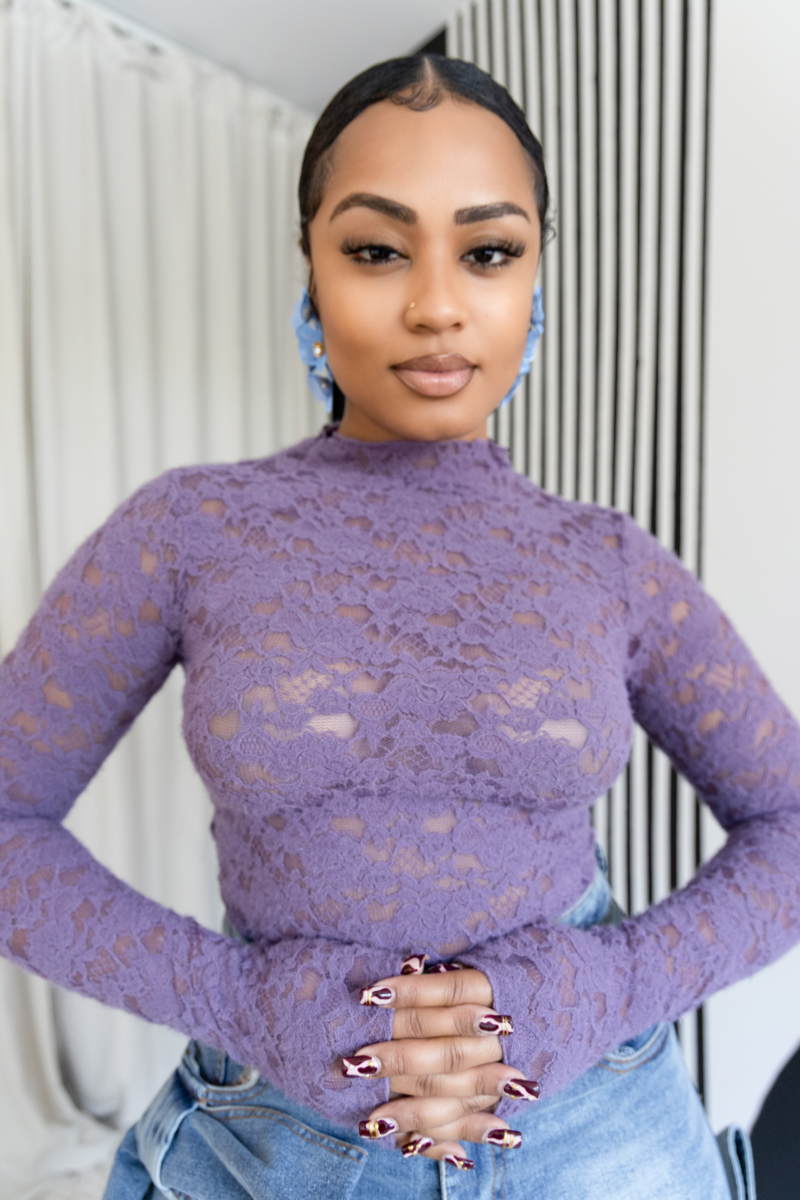 - Enhance your wardrobe with this sophisticated long sleeve lace top. Its high neck and intricate lace detailing add a delicate and feminine touch to any outfit. The fitted silhouette and soft fabric provide comfort, making it versatile for both casual and formal occasions. Complement it with a pleated skirt or tailored trousers for a timeless and refined appearance.