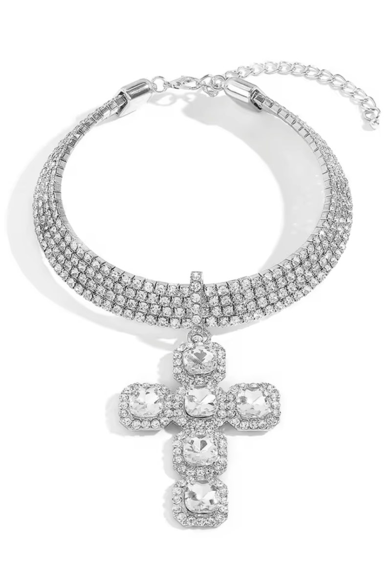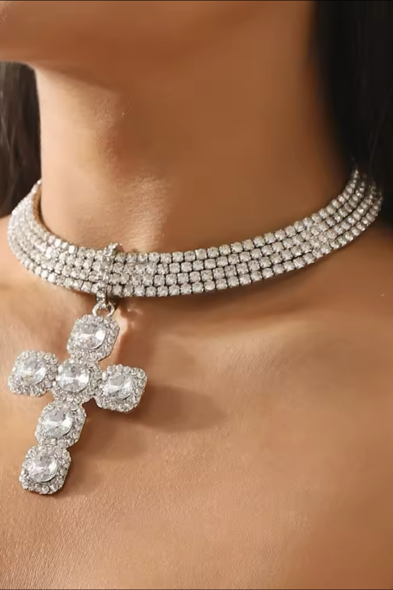 Unleash your daring side with this stunning and edgy Fashion Luxury Full Rhinestone Cross Necklace. Channel your inner risk-taker as you wear this vintage-inspired Hip hop Personality Choker, adorned with dazzling rhinestones. Make a statement and stand out from the crowd with this bold and adventurous fashion piece!