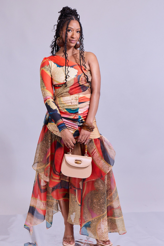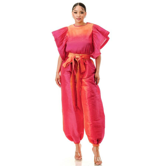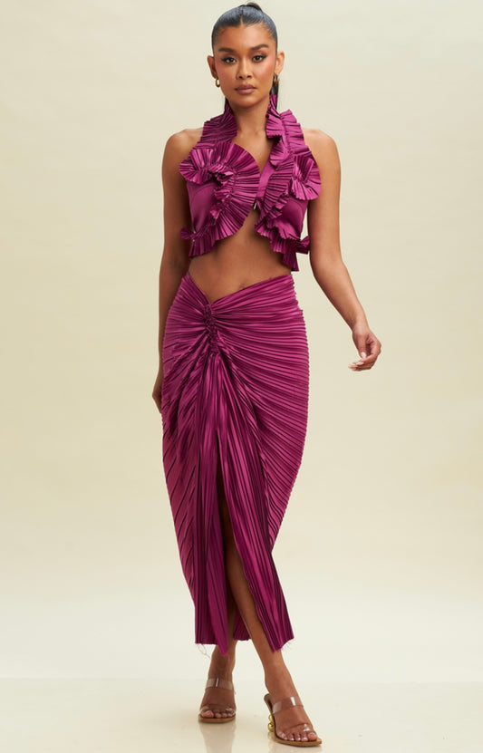 Scarlet Shimmer Ruffle Chiffon Set (FINAL SALE)