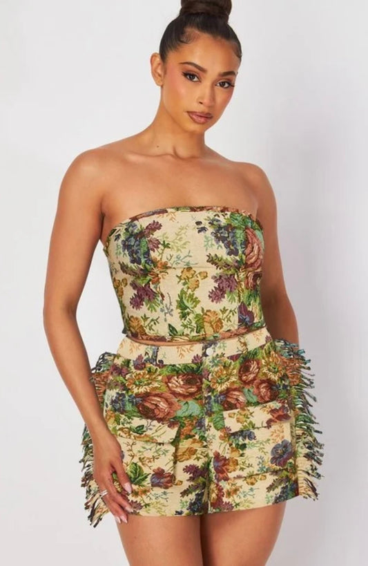 Bloom in Rose Floral Corset and Pants Set