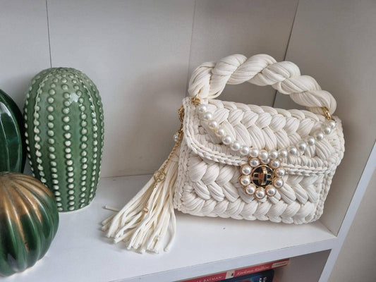 Pearl Elegance Handmade Crochet Bag