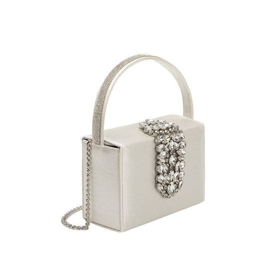 Liliana White Satin Jeweled Crossbody Bag
