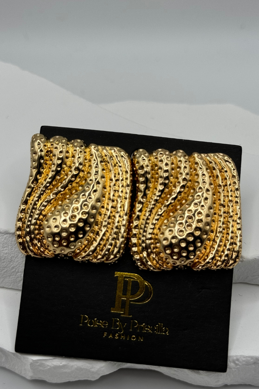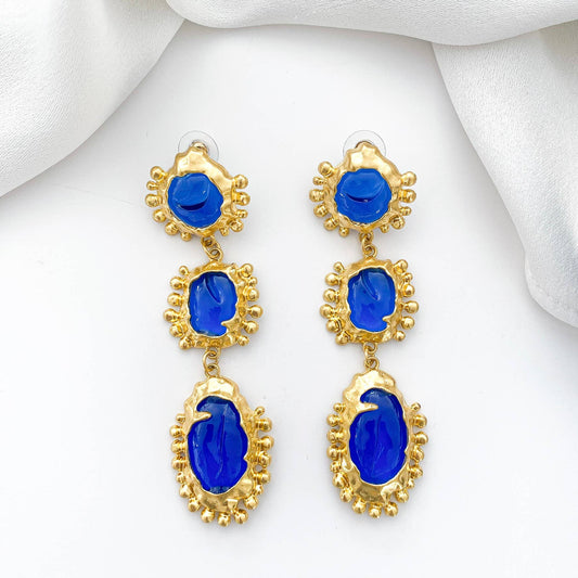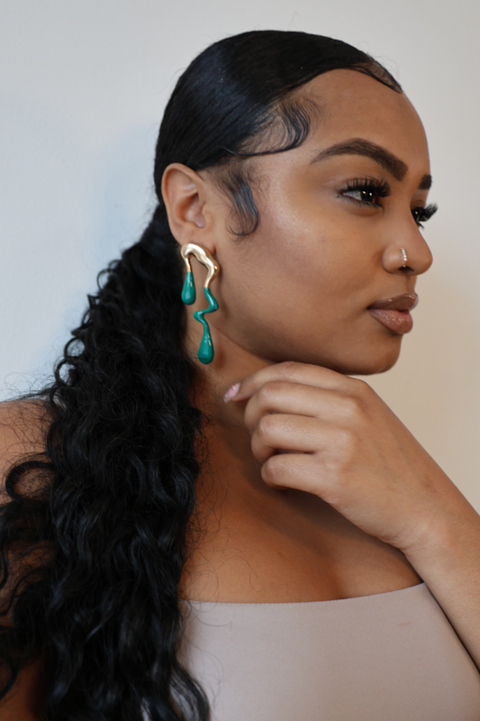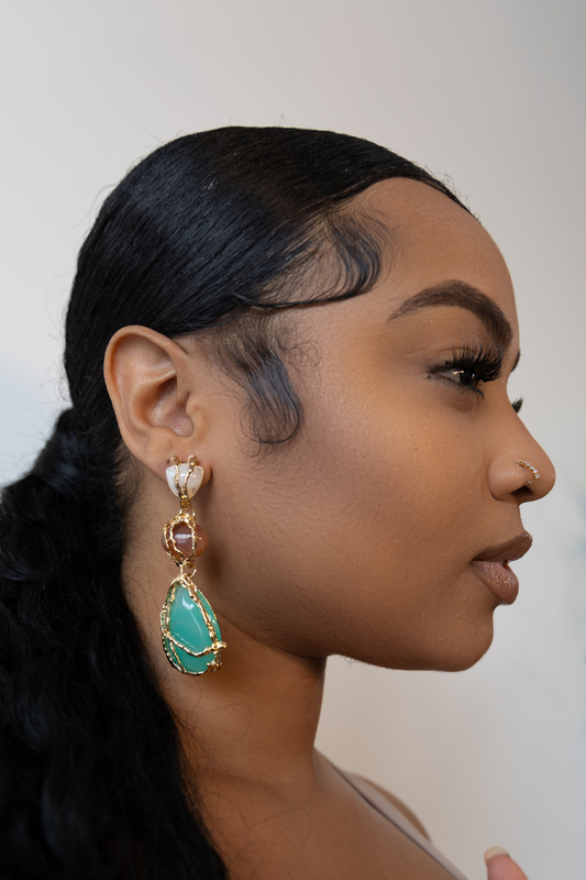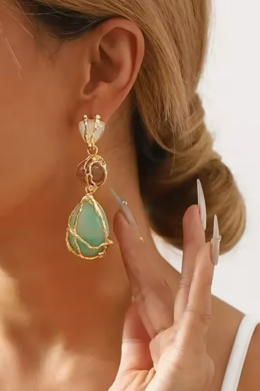 Drop Edgy Green Stone Hinge Gold Square Earrings