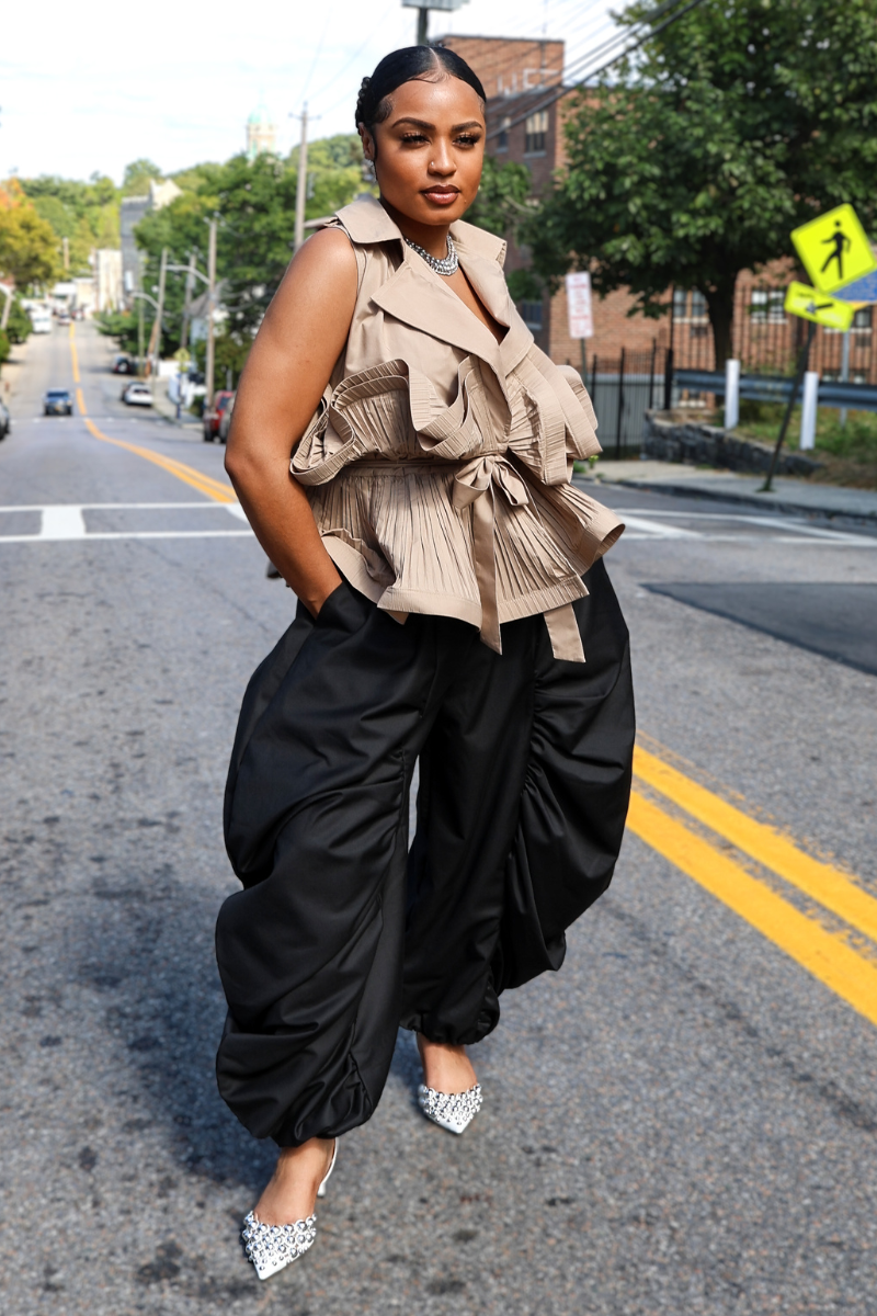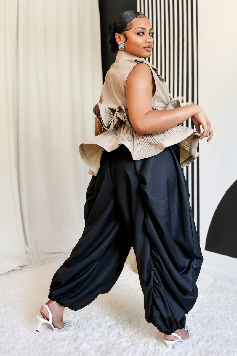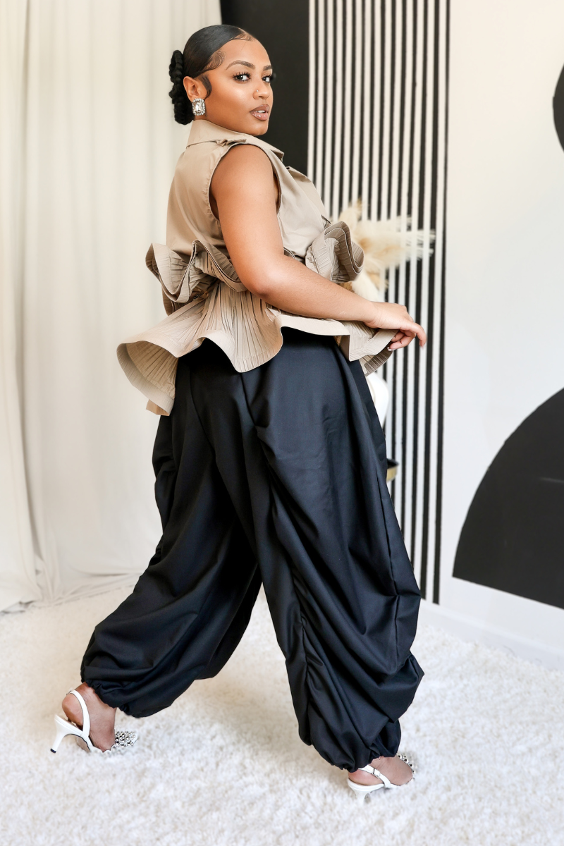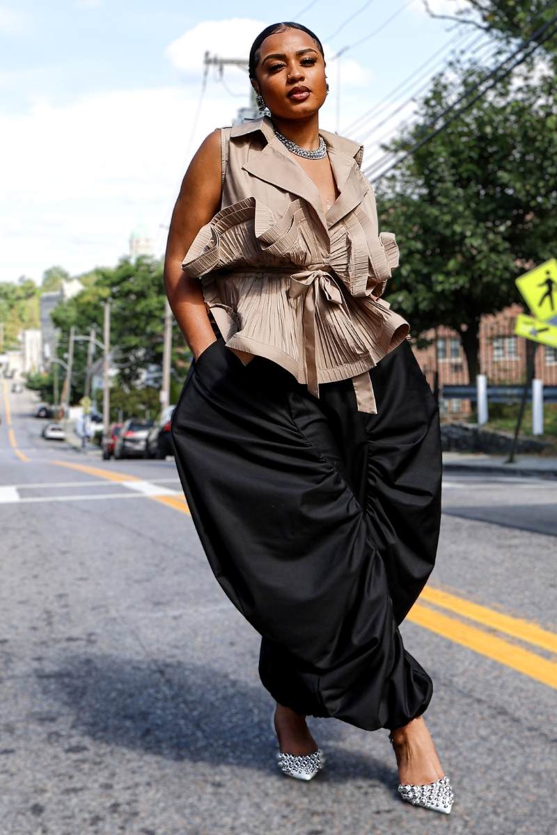 - Made with a blend of fabrics and polyester, this top offers a luxurious and flowy drape.