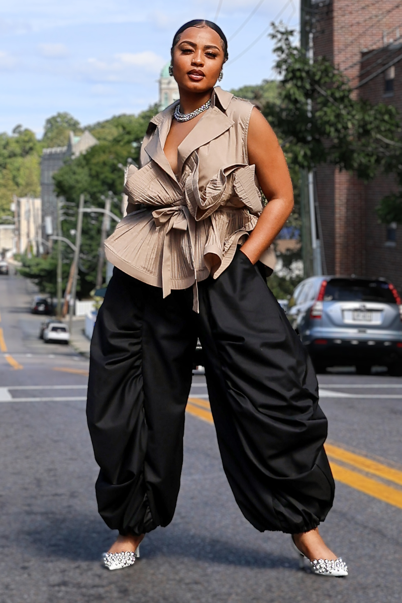 - For a tailored touch, it comes with a chic belt. -The slight stretch allows for added comfort.