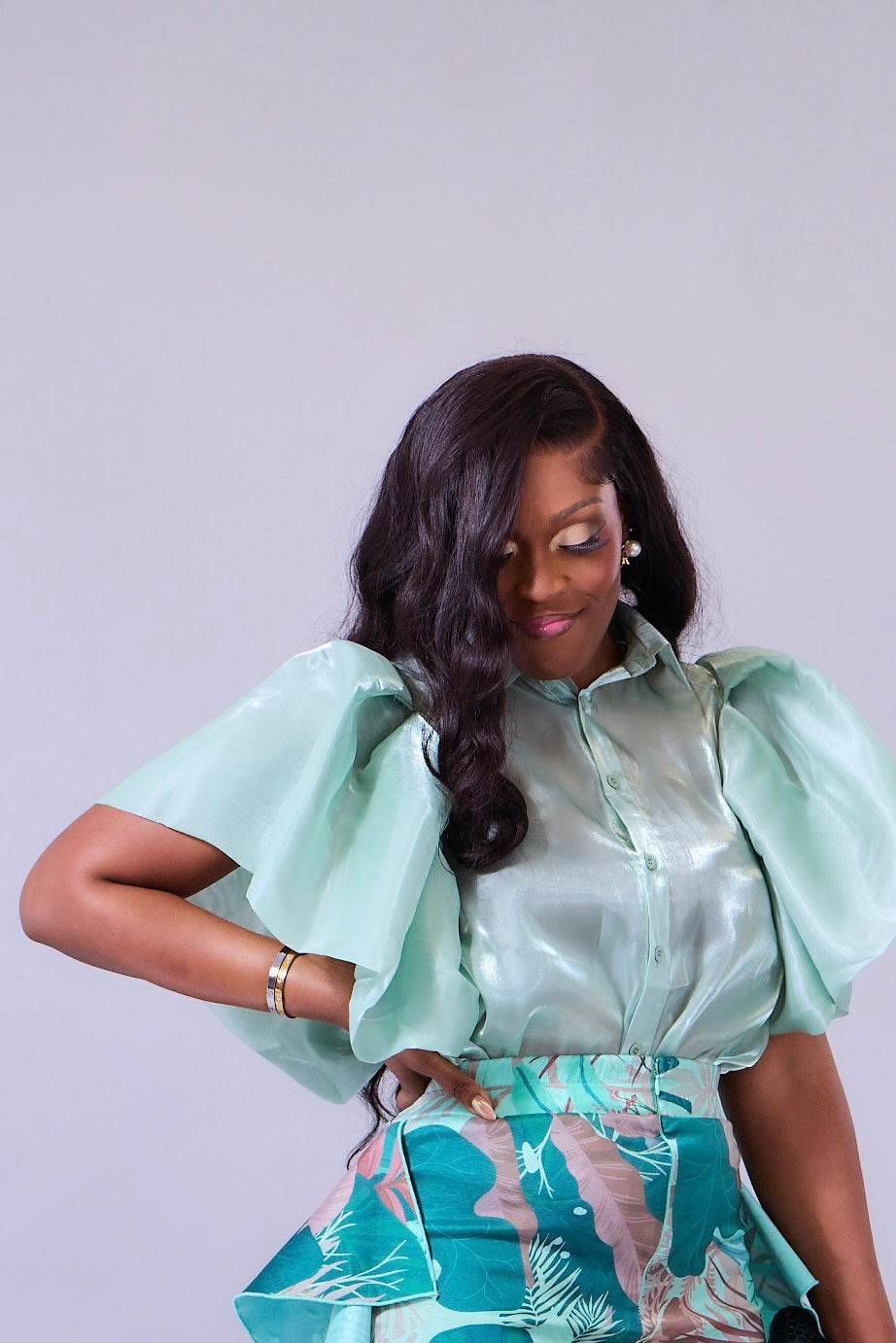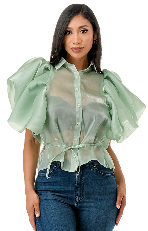 - The Luminous Blouse is made with light weight chiffon that gracefully drapes over your arms and silhoutte, this blouse is the perfect embodiment of sophistication and femininity . Experience the benefits of a sophisticated and feminine look with the Luminous Elegance Blouse. Crafted from lightweight chiffon, this blouse gracefully drapes over your arms and offers a flattering silhouette. Elevate your wardrobe with this must-have piece of elegant fashion.