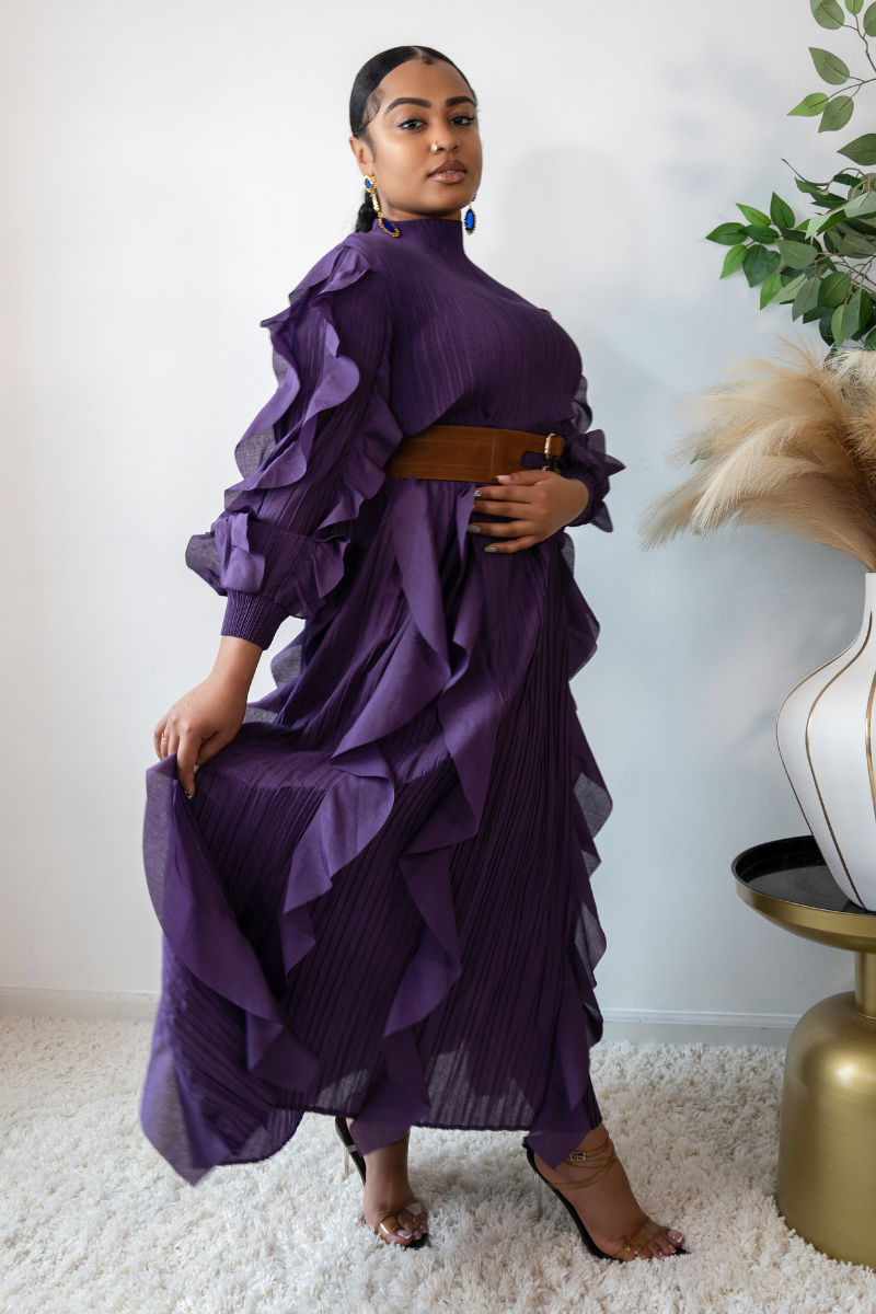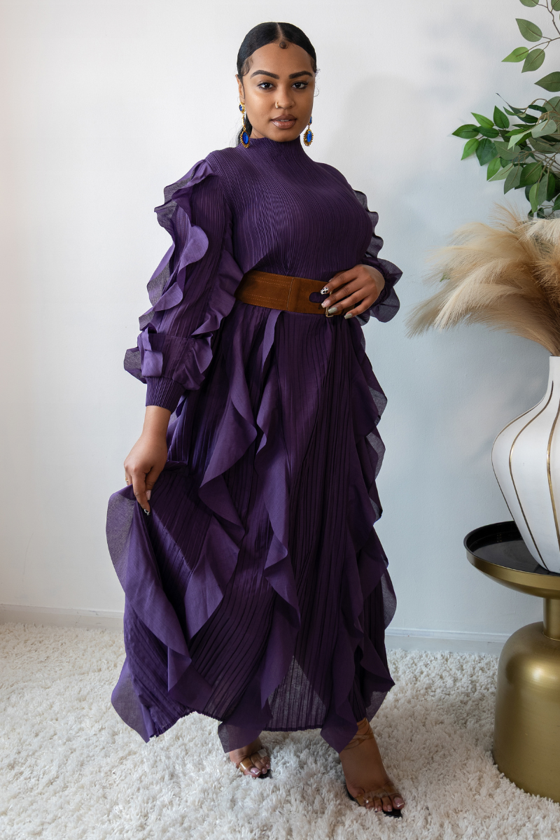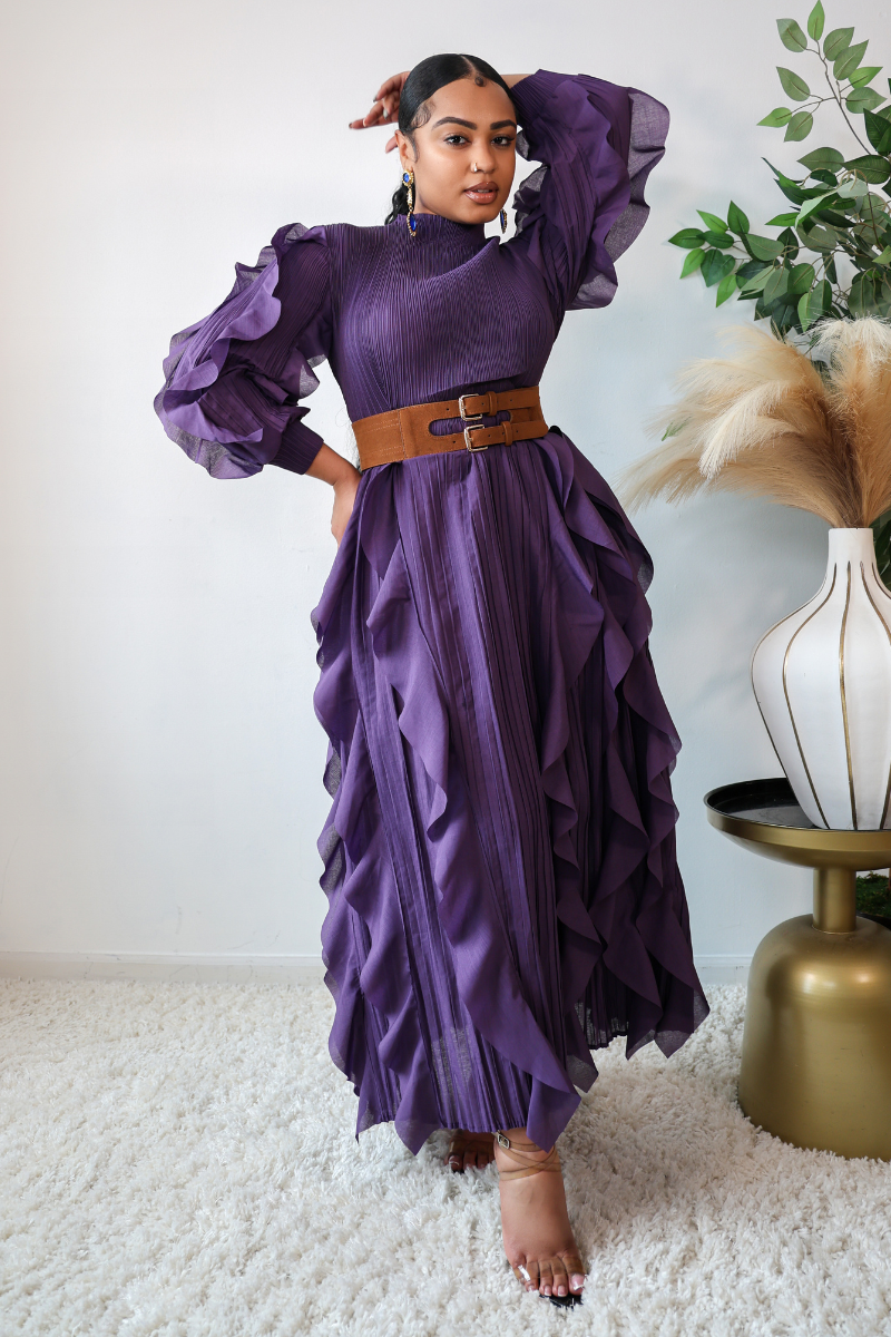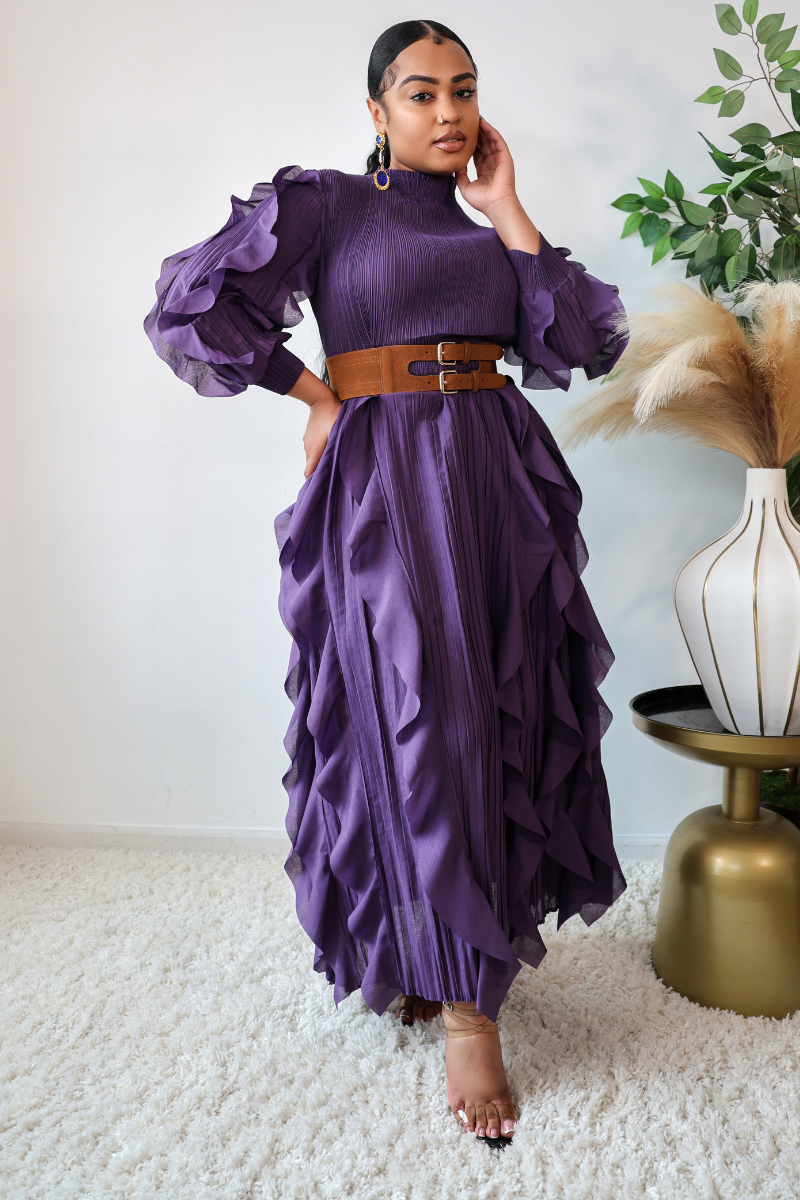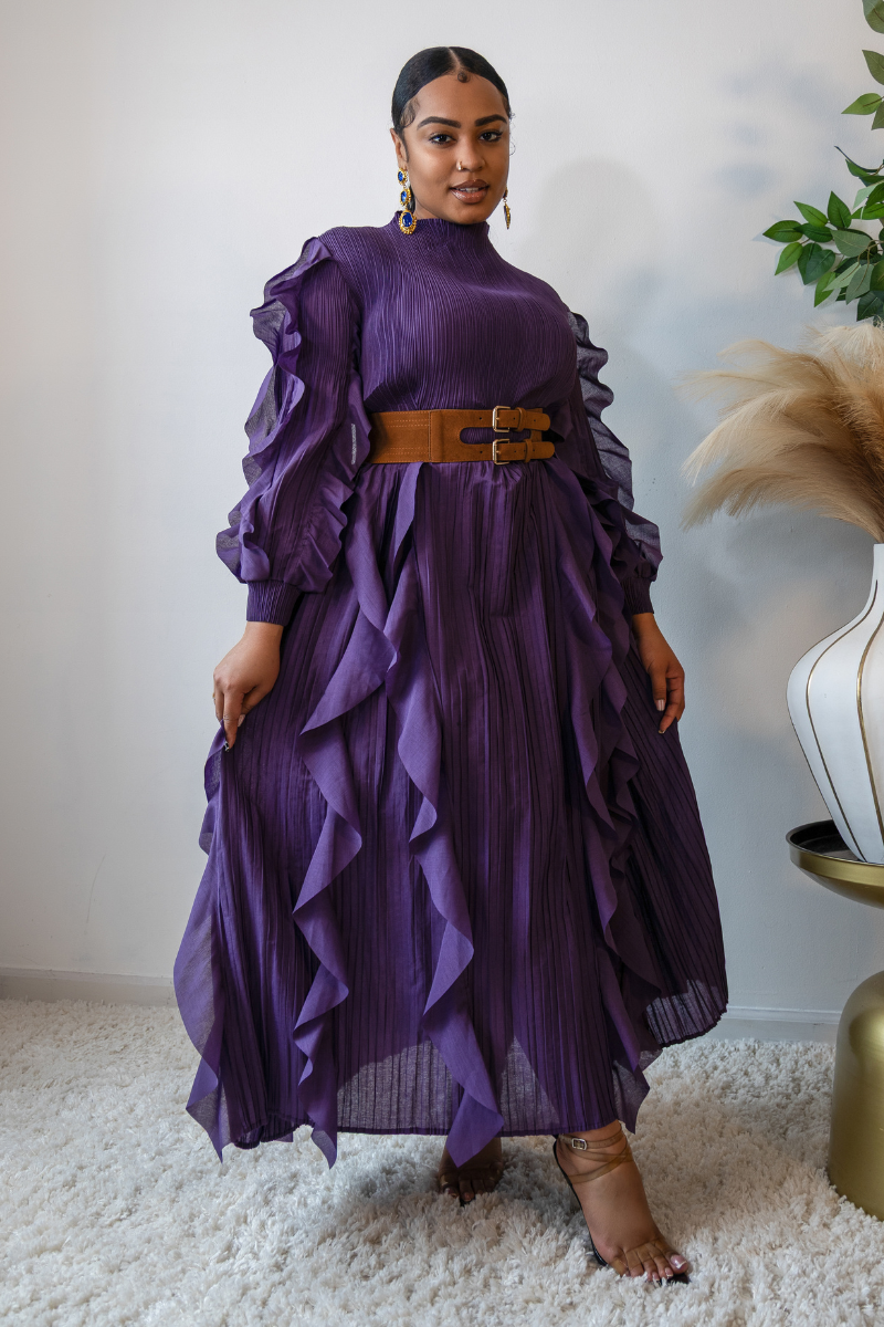 - For added elegance and sophistication, our model paired it with a belt- not included.