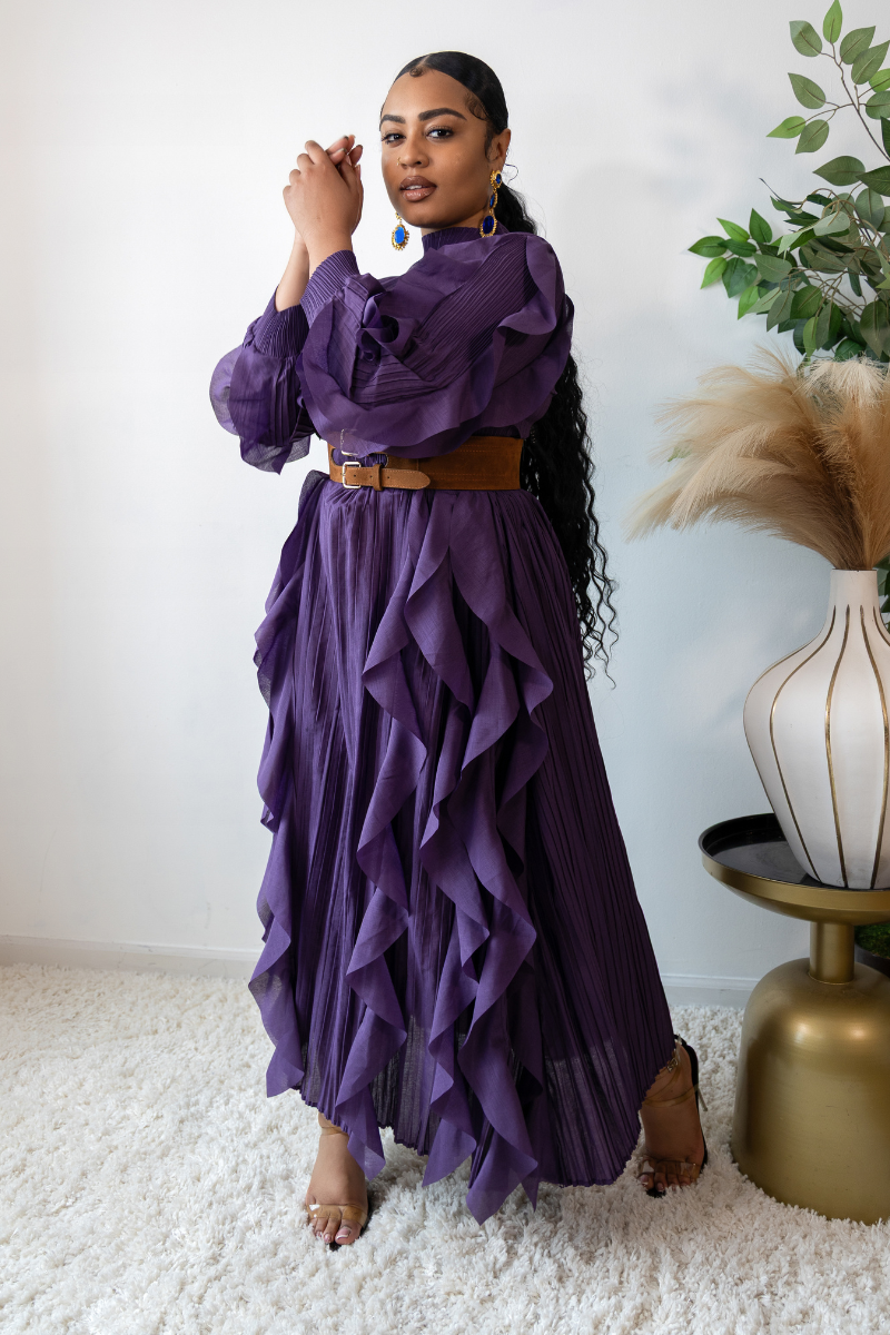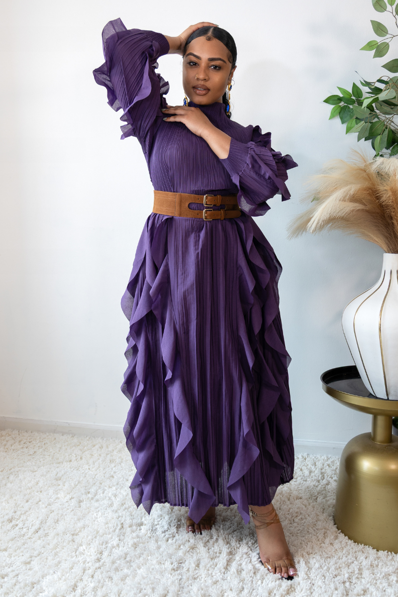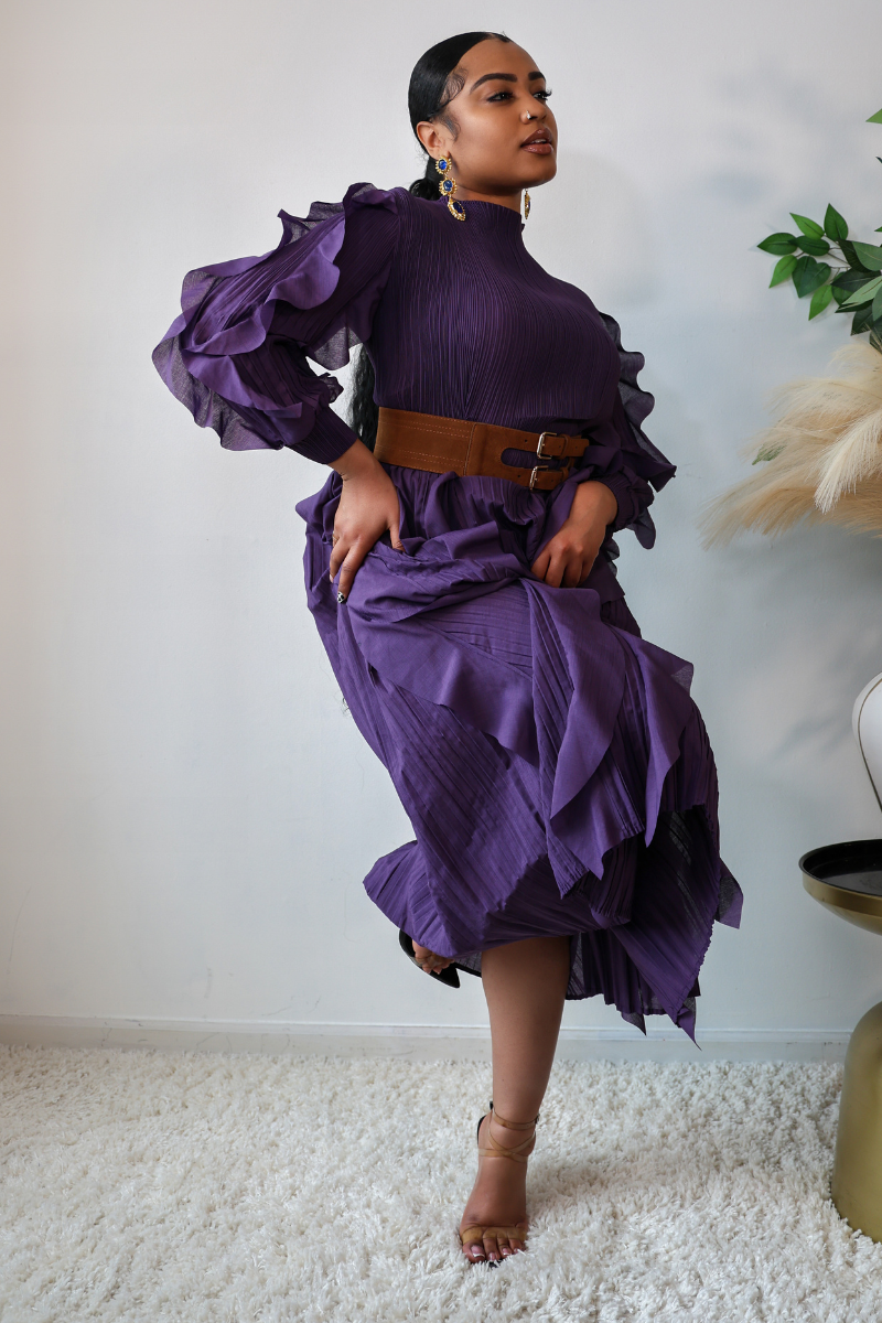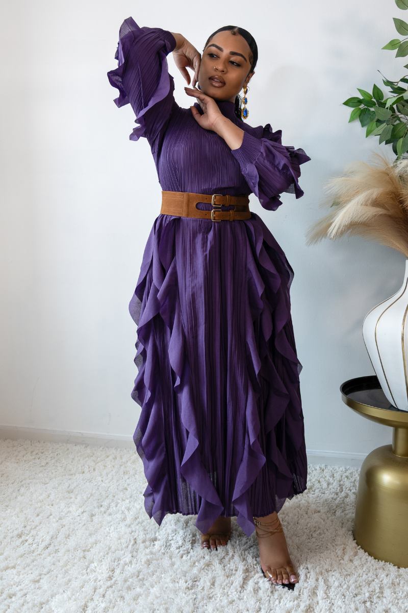 - For added elegance and sophistication, our model paired it with a belt- not included.
