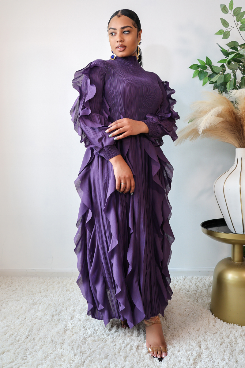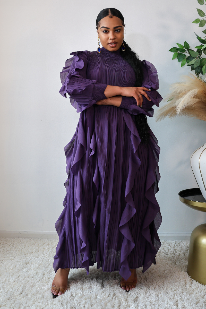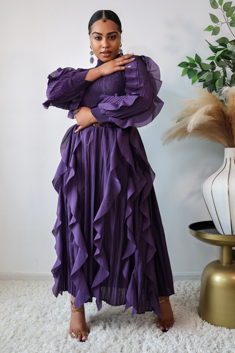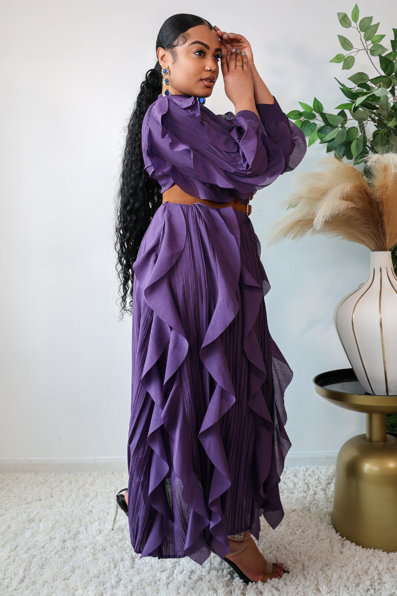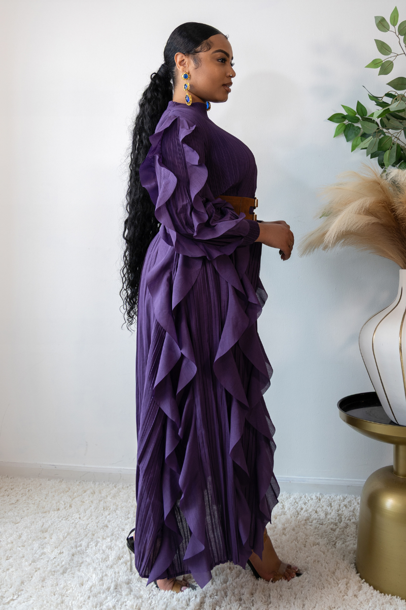 - For added elegance and sophistication, our model paired it with a belt- not included.
