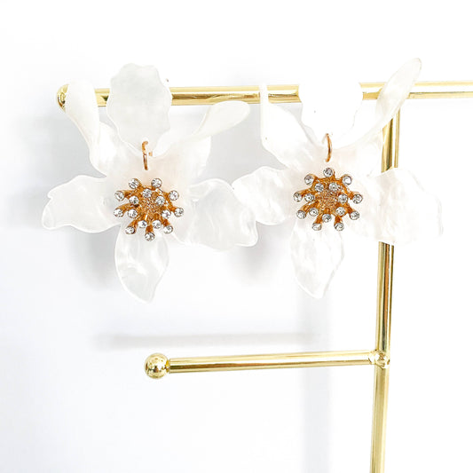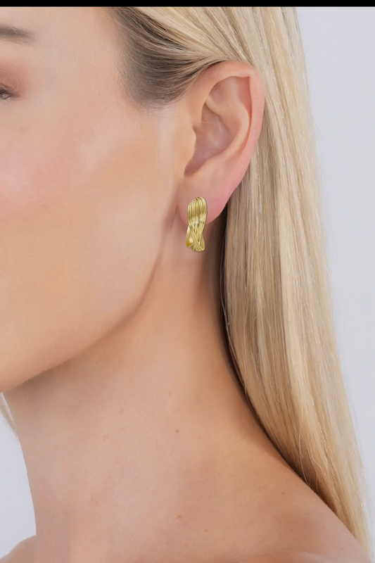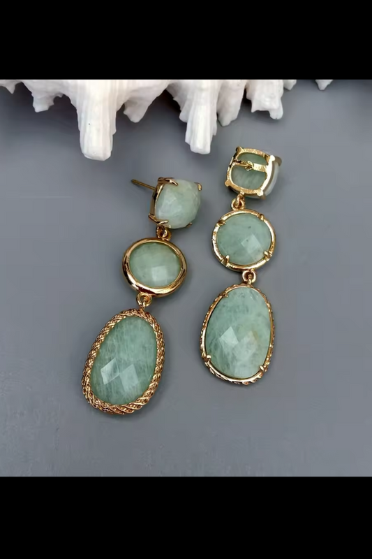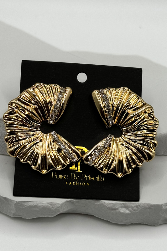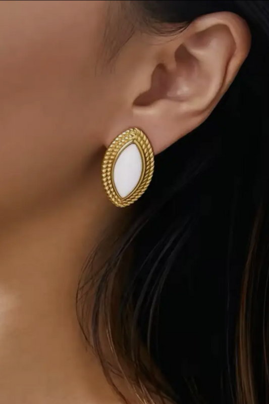 Oval Diamond Shape White Stone 18k Gold Plated Earrings