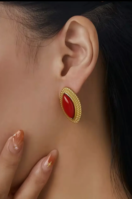 Oval Diamond Shape Red Stone 18k Gold Plated Earrings