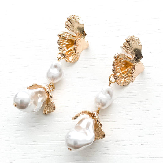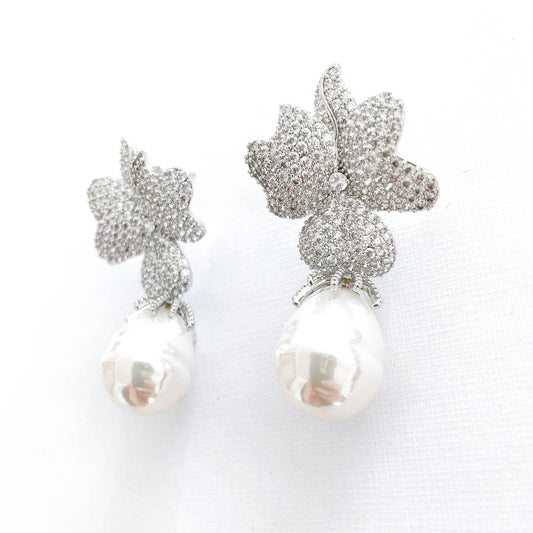 Deluxe Baroque Pearl and Silver Crystal Flower Earrings